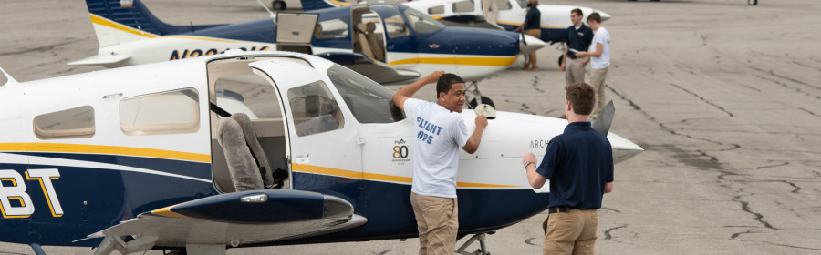 Having a private pilot’s license allows you to fly with passengers. This rating is the first rating you will receive and opens the aviation doors to you. The requirements are listed below to obtain this certificate. There are two areas, Flight training and ground school. At AU Aviation Services, our Ground School consists of self-study books.